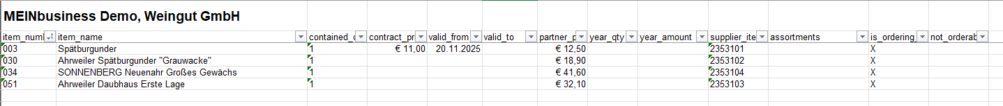 Hierzu musst du, neben Vertragspreis und Gültig-ab-Datum, auch die Artikelnummer des Lieferanten (item_number) und Artikelbezeichnung (item_name) angeben.