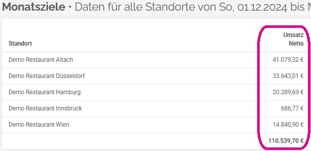 Der Netto-Umsatz in den Insights ist die Summe aller Kassenbelege, die wir für den ausgewählten Zeitraum (Tag/Monat) aus deiner Kasse erhalten haben.