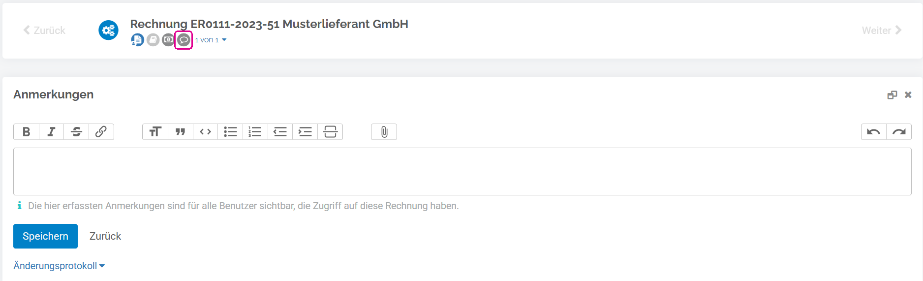 Der folgende Beitrag erläutert detailliert die Prozessschritte, die Bedeutung der Icons und die Nutzung des Anmerkungsfelds → Prozess bei Rechnungen mit Klärungsbedarf