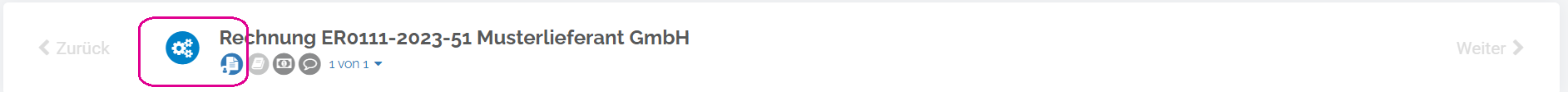 Status der Rechung in der inhaltlichen prüfung auf “wird bearbeitet” setzen. Das ICON färbt sich blau.