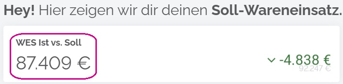 Der Wareneinsatz ist die Summe aller wareneinsatzrelevanten Rechnungsbeträge, die an die MEINbusiness Inbox gesendet wurden.