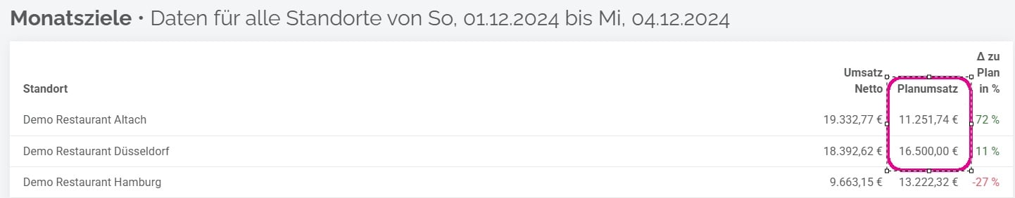Bei der Darstellung des Monatsziele Planumsatz gibt es zwei Varianten.