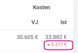 Die Abweichung zeigt, ob die Kosten aus Lieferantenrechnungen gestiegen oder gesunken sind im Vergleich zum Vorjahr