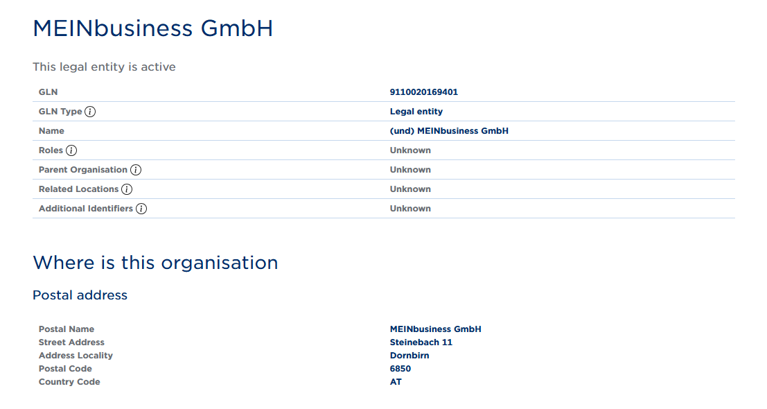 Die richtigen GLNs werden in der Regel direkt durch den Kunden bekannt gegeben. Sollte bereits eine EDI-Schnittstelle zu MEINbusiness bestehen, wird die GLN bei der EDI-Aktivierung mitgeteilt.