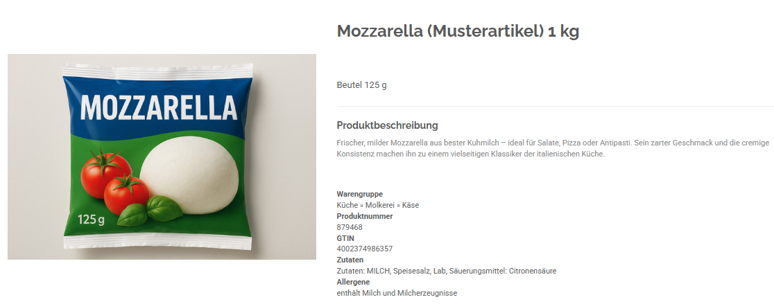 Durch die Angabe der GTINs im Artikelstamm/PRICAT, können wir dem Kunden detailliertere Artikeldaten zur Verfügung stellen. Darunter zählen unter anderem Artikelbilder, Allergene, Nährwerte, Deklarationen oder auch Warengruppen.