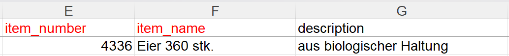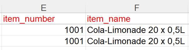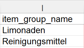 Wird eine Warengruppennummer angegeben, ist die Spalte item_group_name verpflichtend auszufüllen.