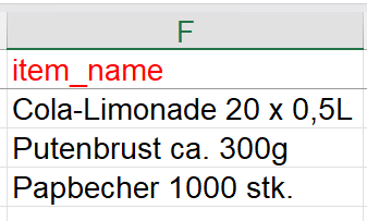 Die Spalte item_name ist weiterhin verpflichtend und vorrangig als Artikelbezeichnung anzusehen.