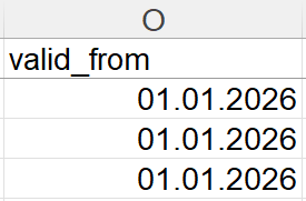 Setze ein gültig-ab-Datum für den Preis im Format TT.MM.JJJJ