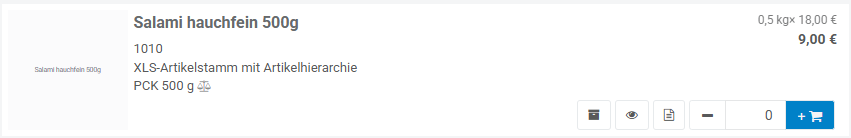 Eine Packung geschnittene Salami mit 500g wird bestellt, der Preis richtet sich pro Kilogramm.