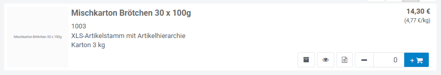 Ein Karton Brötchen wird pro Karton mit einem Kartonpreis bestellt, pro Karton geliefert und pro Karton fakturiert.