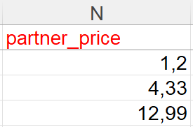 partner_price: Immer Preis der kleinsten Einheit (bei allen Zeilen mit gleicher Artikelnummer)