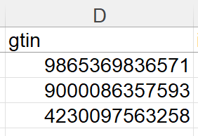 Steht der passende GTIN zur Verpackungseinheit nicht zur Verfügung, bleibt die Zelle leer.