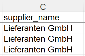 Für jede Zeile, die einen Artikel beinhaltet muss der supplier_name wiederholt werden.