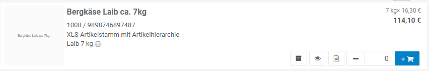 Ein Laib Käse wird bestellt, fakturiert wird pro Kilogramm.