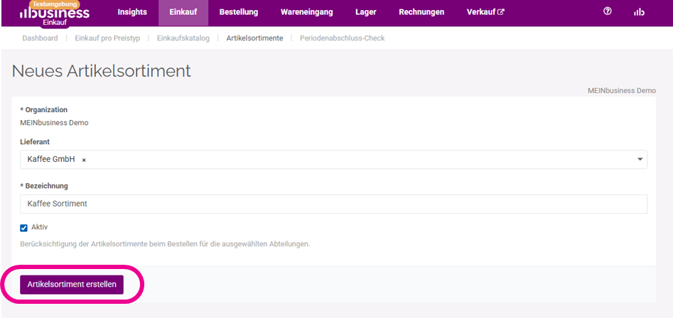 Dazu öffnet man das Tool "Artikelsortimente", das findest du im Menüpunkt “Einkauf” als Unterpunkt: